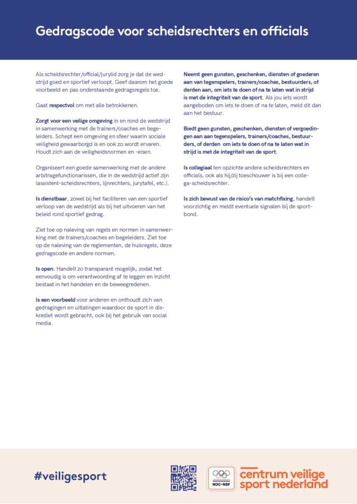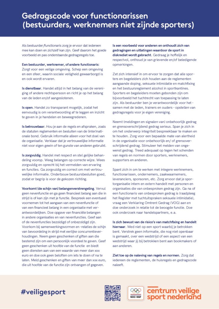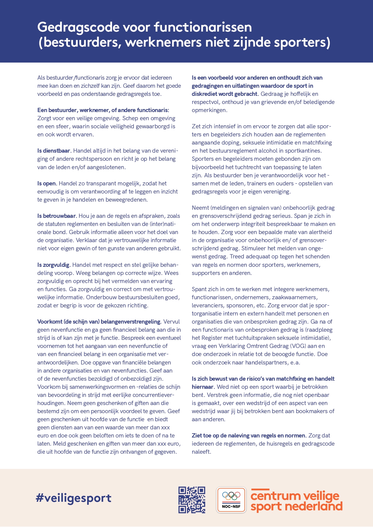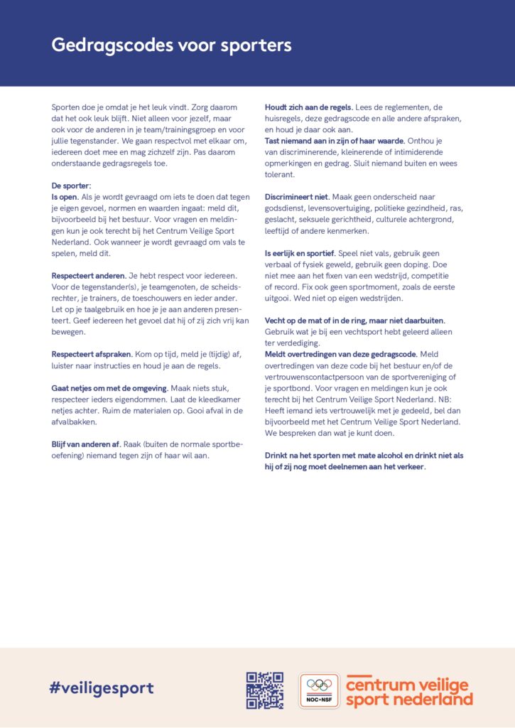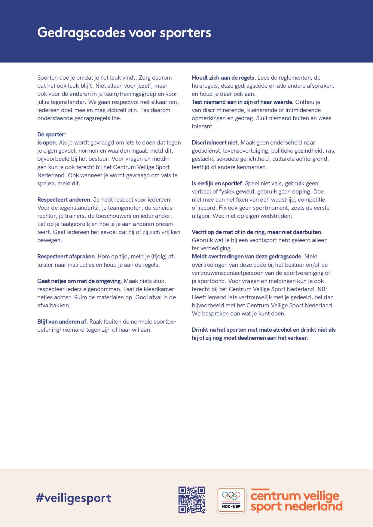 Aanvullende gedragsregels voor een veilig sportklimaat